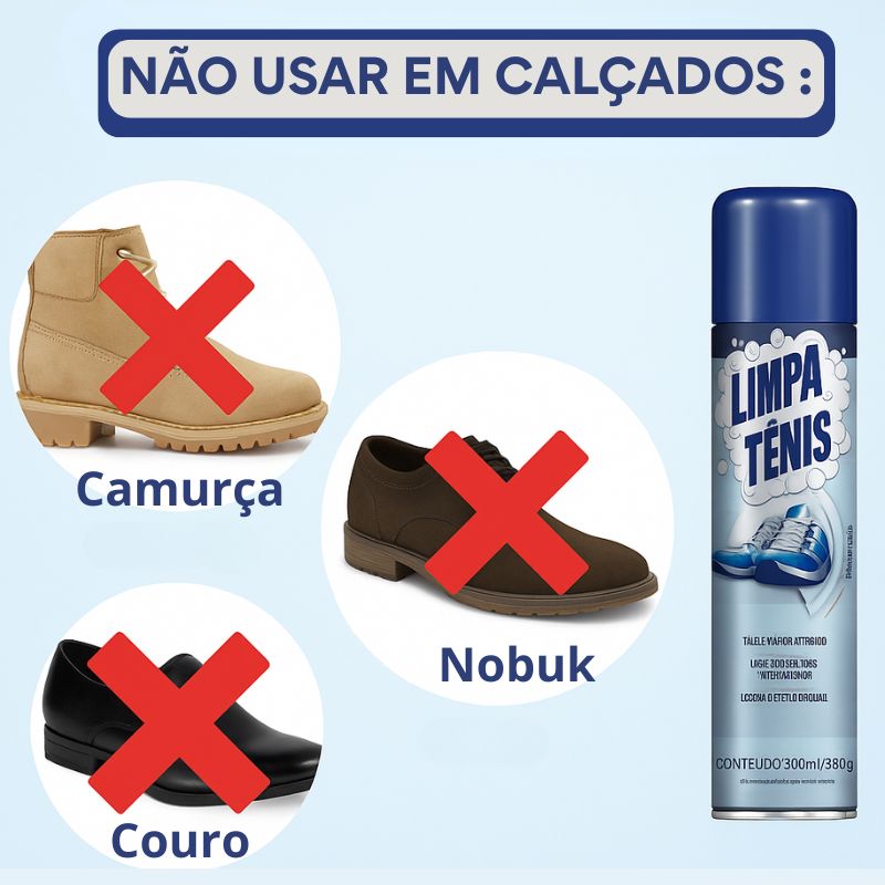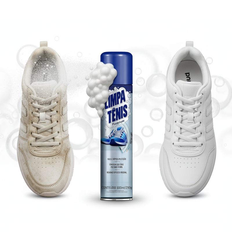 O LimpaTênis Premium é uma espuma de limpeza profunda desenvolvida para renovar a aparência dos seus calçados de forma prática, rápida e sem precisar usar máquina de lavar.